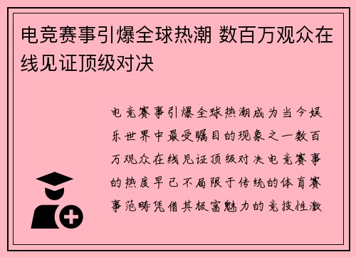 电竞赛事引爆全球热潮,成为当今娱乐世界中最受瞩目的现象之一。数百万观众在线见证顶级对决,电竞赛事的热度早已不局限于传统的体育赛事范畴,凭借其极富魅力的竞技性、激烈的对抗性以及巨大的观众群体,电竞赛事吸...